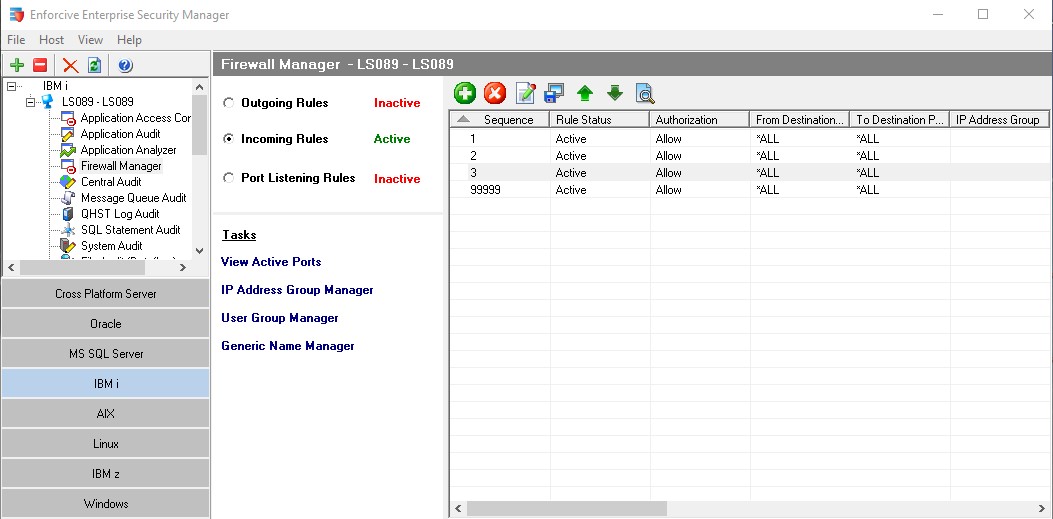 Incoming Rules limit the traffic entering the IBMi. This is probably where you start configuring your protection. Rules are configured to log successful events and un-successful events.