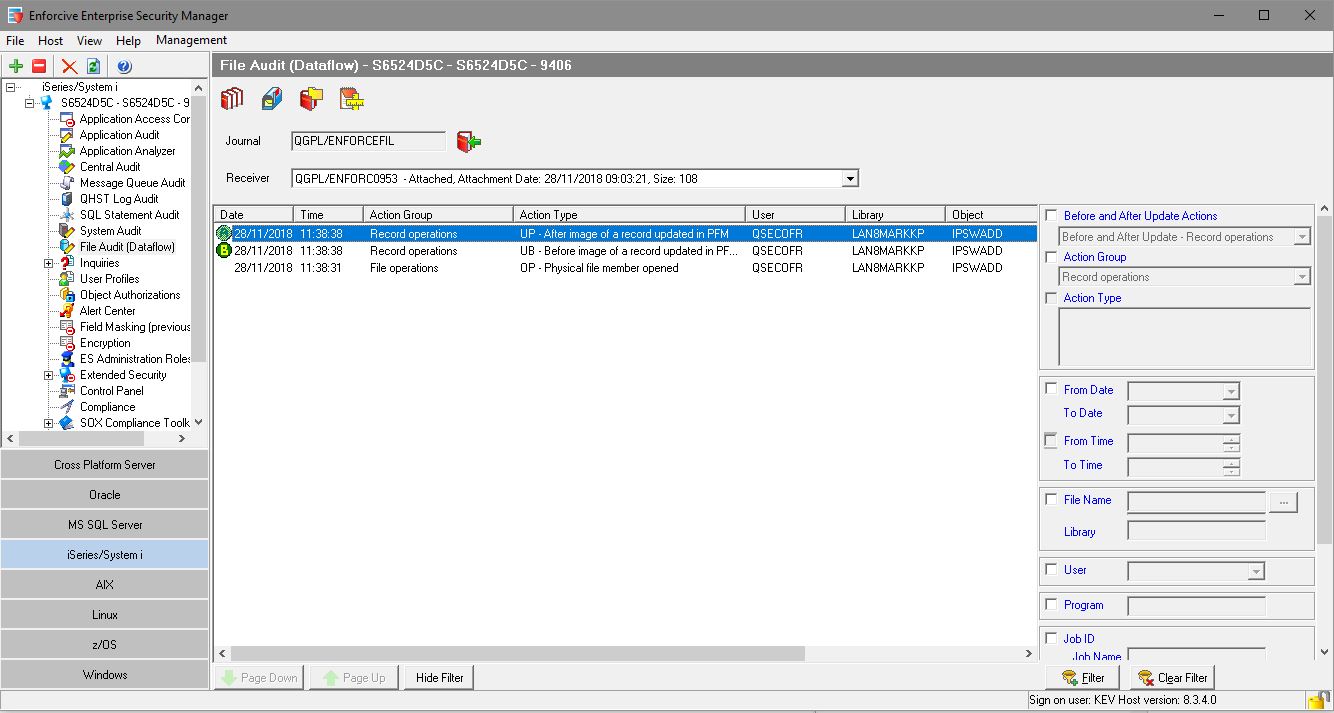 File Audit is a database integrity mechanism which allows you to monitor changes in the database at the file level or field level. It provides GUI based control of the native file journal management functions.