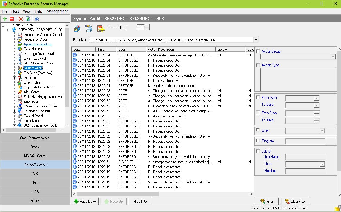 - Convenient view of system events combined with a powerful filtering capability